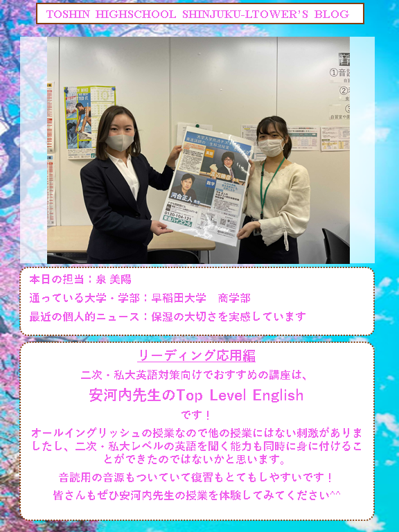 二次・私大英語対策編 (早稲田大学商学部・泉) | 東進ハイスクール 新宿エルタワー校 大学受験の予備校・塾|東京都